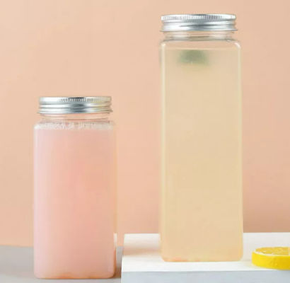 Custom Bebida Plastico Botella Square Pet Plastic Beverages Drinking Juice Bottles With Aluminum Cap